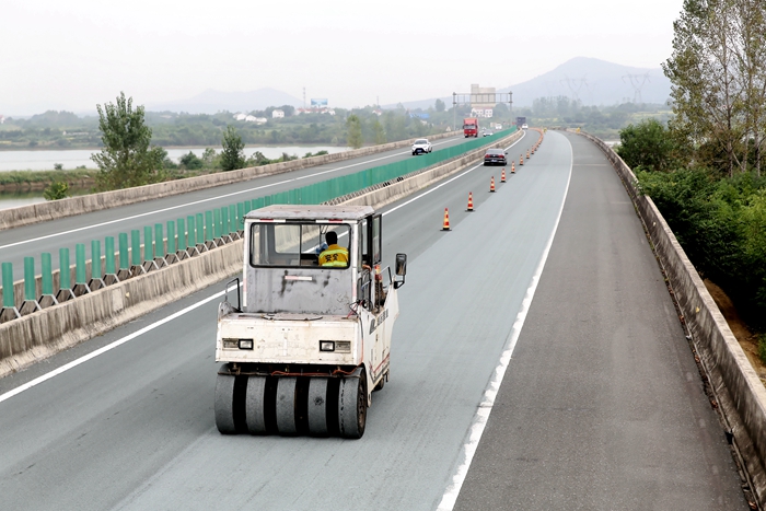 2018年高远公司在湖北武荆高速进行KF-1抗滑雾封层施工