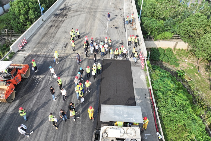 作为本次活动的核心环节,全体人员实地观摩了由九游(中国)进行施工的预防性养护技术现场,直观了解实际应用效果。在长纤维功能化复合封层技术区域,技术人员讲解了该技术如何通过一层找平,两层抗裂,三层防水为道路建立完善的表面功能。在MOH抗滑超薄磨耗层技术现场,参观人员对其抗水损、耐磨耗和抗滑性能进行详细了解。针对车辙、沉陷、龟裂等病害,改性铺装技术展示了如何将沥青混凝土旧路面在常温条件下改性成复合有机水硬性材料路面。以材料关键技术为根本,以成套专用装备为依托,以当代工程技术为手段,该工艺具有抗变形、防水损、耐老化、长寿命等多重技术优势。